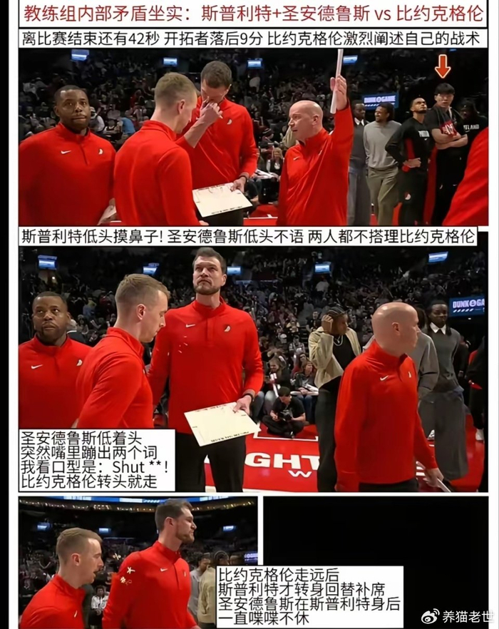 一位在波特兰的华人女网红在评论区暗指开拓者教练团队存在内斗情况,光头教练比约克拥有着很大的话语权和资历。最开始就应该他接替比卢普斯,但其害怕后续被牵连便让给斯普利特。管理层也默许了几个助教轮番表现,来决定下赛季真正的主教练人选。因此,这也就不难理解为何经常看到比约克越过斯普利特指挥球队的画面,而比约克擅长的也是五小阵容。
